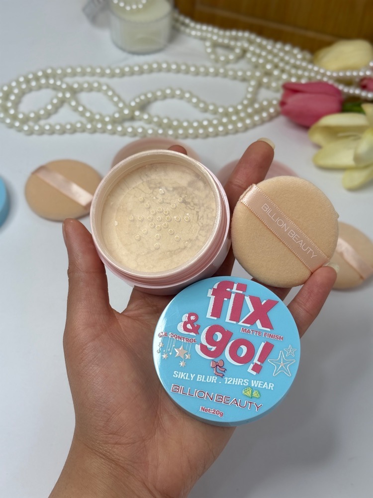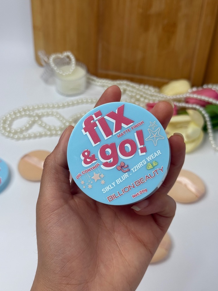 پودر فیکس آبی تستر دار BILLION BEAUTY مدل Fix & Go! یک پودر تثبیتکننده آرایش با فرمول سبک و جلوه نهایی مات است که ماندگاری میکاپ را بهصورت قابلتوجه افزایش میدهد.