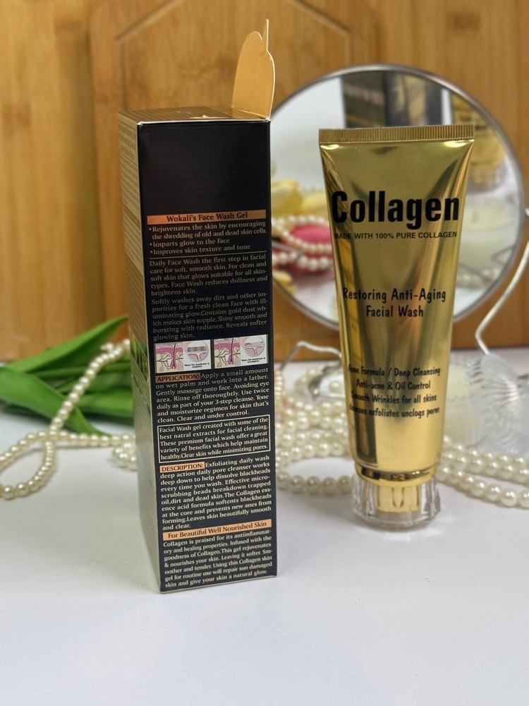 فوم شوینده کلاژن ساز و ترمیم کننده وکالی WOKALI منافذهای باز صورت را عمیقا پاک میکند و آن ها را می بندد و مانع از نفوذ مواد شیمیایی و آلوده می شود.