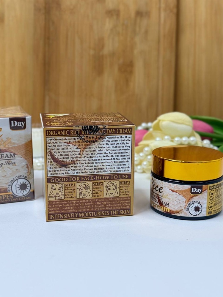 کرم روز جوانساز عصاره برنج وکالی WOKALI سفید کننده و مرطوب کننده پوست صورت می باشد و باعث افزایش قابلیت ارتجاعی پوست و جلوگیری از خشکی پوست می شود.