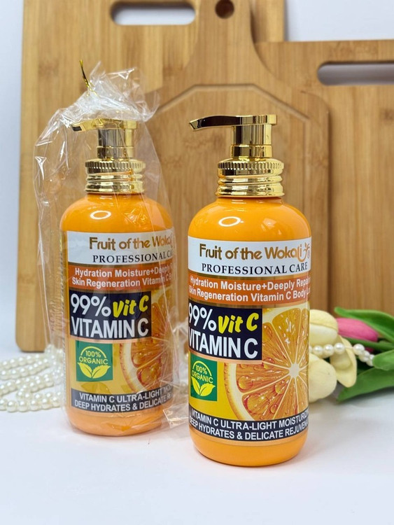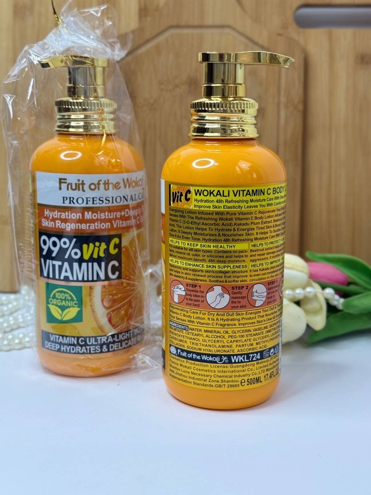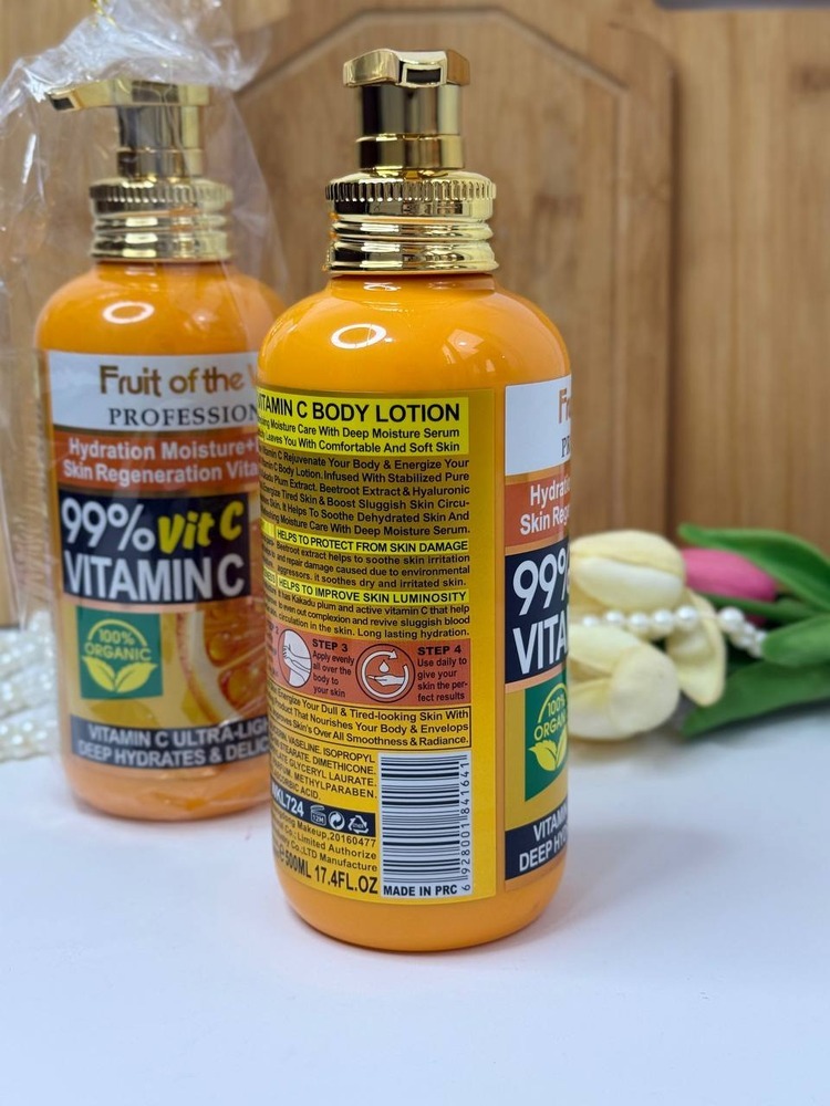 لوسیون ویتامین سی، پوست را روشن و صاف میکند و چروک و نقاط مشکی روی پوست را رفع میکند.پوست را سفت کرده و آبرسانی میکند تا افتادگی آن کم شود.