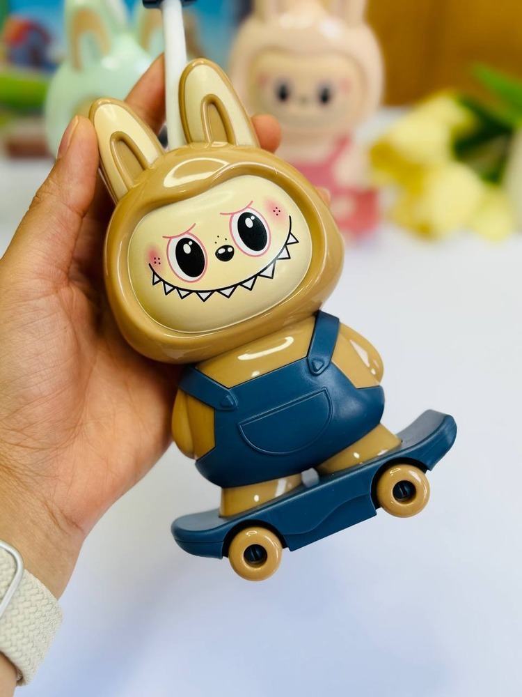 طراحی فانتزی و شاد لبوبو روی اسکیتبرد با گوشهای خرگوشی خاص.