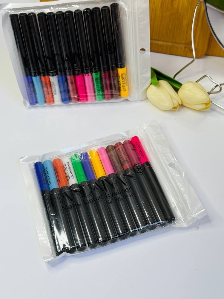 پک 12 عددی خط چشم رنگی هندیان HANDAIYAN یک محصول آرایشی است که شامل 12 عدد خط چشم با رنگهای مختلف و جذاب میباشد. این پک بهطور خاص برای افرادی طراحی شده است که میخواهند تنوع و رنگهای متفاوتی را در آرایش چشمهای خود تجربه کنند. خط چشمهای این مجموعه معمولاً با کیفیت بالا و فرمولاسیون ویژهای تولید میشوند تا ماندگاری و رنگدهی خوبی داشته باشند.