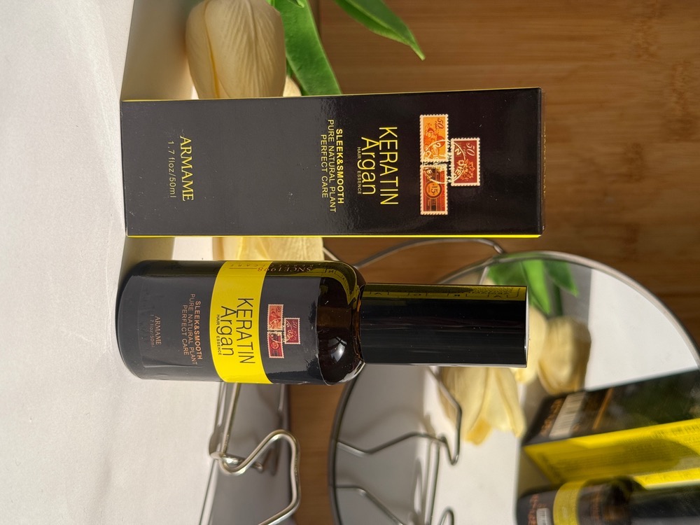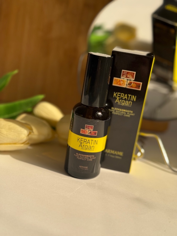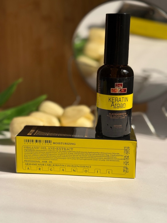 روغن مو کراتین و آرگان آرمام Armame یک محصول مراقبتی حرفهای برای مو است که ترکیب کراتین و روغن آرگان را در کنار هم قرار داده تا موها را عمیقاً تغذیه و بازسازی کند. این روغن با بافت سبک و جذب سریع، به ترمیم موهای آسیبدیده، کاهش وز و افزایش درخشندگی طبیعی مو کمک میکند.