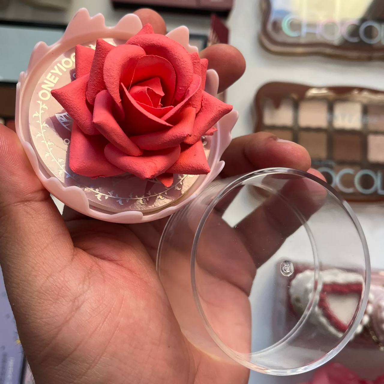 رژگونه و هایلایتر پودری طرح گل رز ONEYIOO