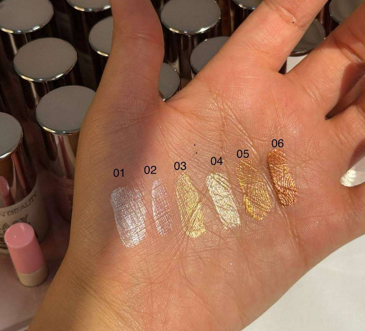 اعمال محصول: مقدار کمی از هایلایتر را روی نقاط برجسته صورت (استخوان گونه، تیغه بینی، بالای ابرو و چانه) با انگشت یا براش بزنید.