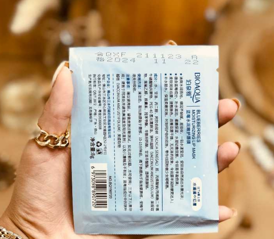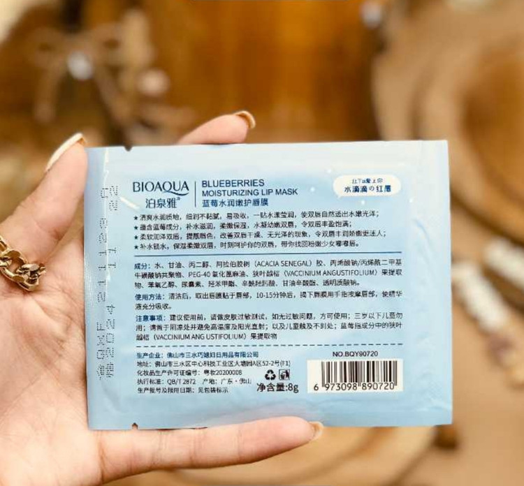 ماسک ورقه ای لب آبی بیوآکوا BIOAQUA حاوی خواص ترمیم کنندگی و رطوبت رسانی به لب ها می باشد.