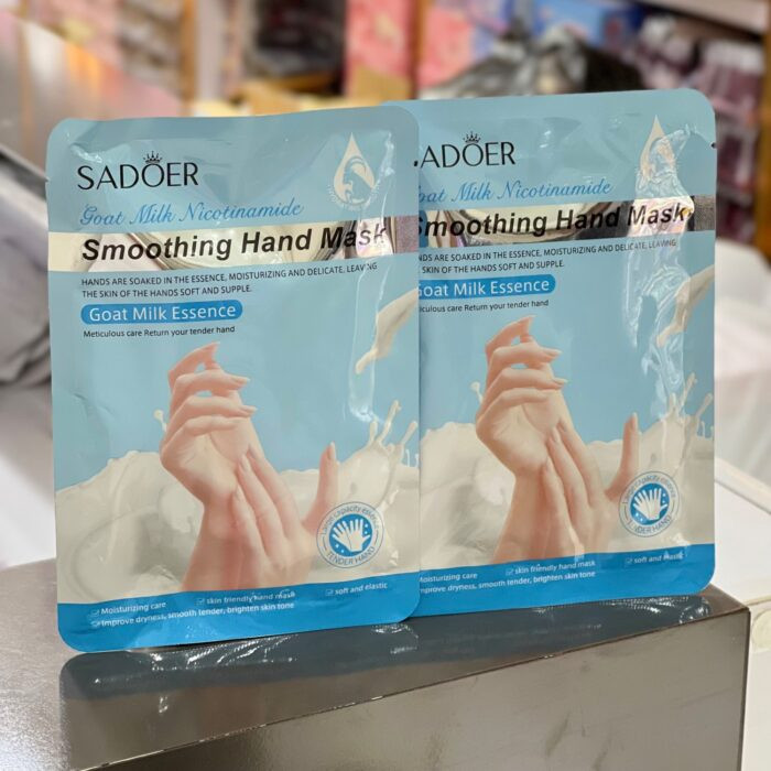 ماسک دست ورقه ای شیر سادوئر SADOER دارای رایحهای بسیار ملایم، لطیف و کرمی است که حس تمیزی و آرامش به پوست دست میدهد.