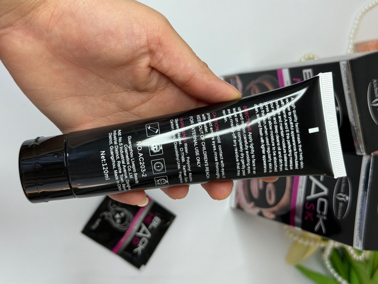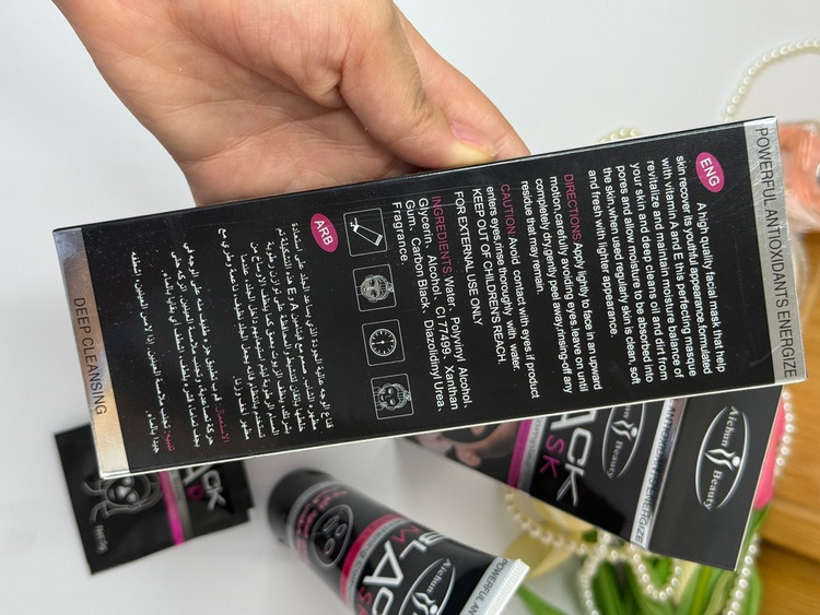 این ماسک دارای رنگ مشکی (زغالی) است که نشاندهنده قدرت جذب آلودگی و چربی از منافذ پوست میباشد.