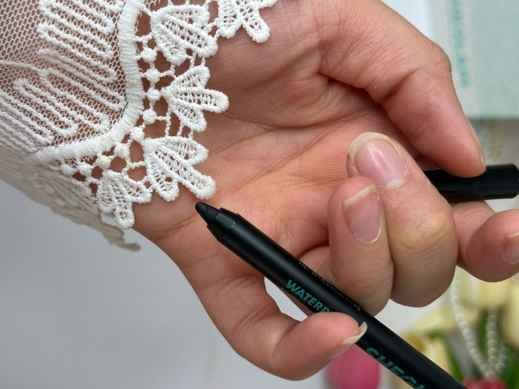 مداد را بهآرامی روی خط مژه یا داخل چشم بکشید.